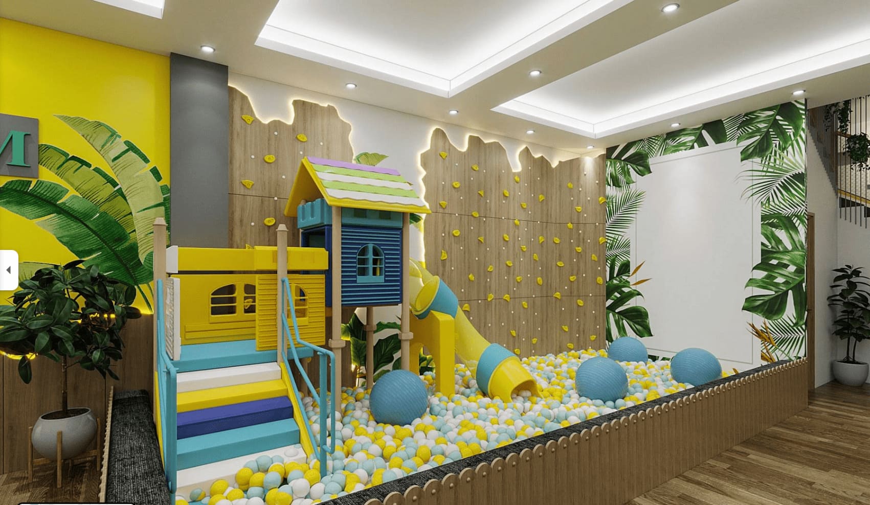 Khu vui chơi nhiều màu sắc với cầu trượt và bóng